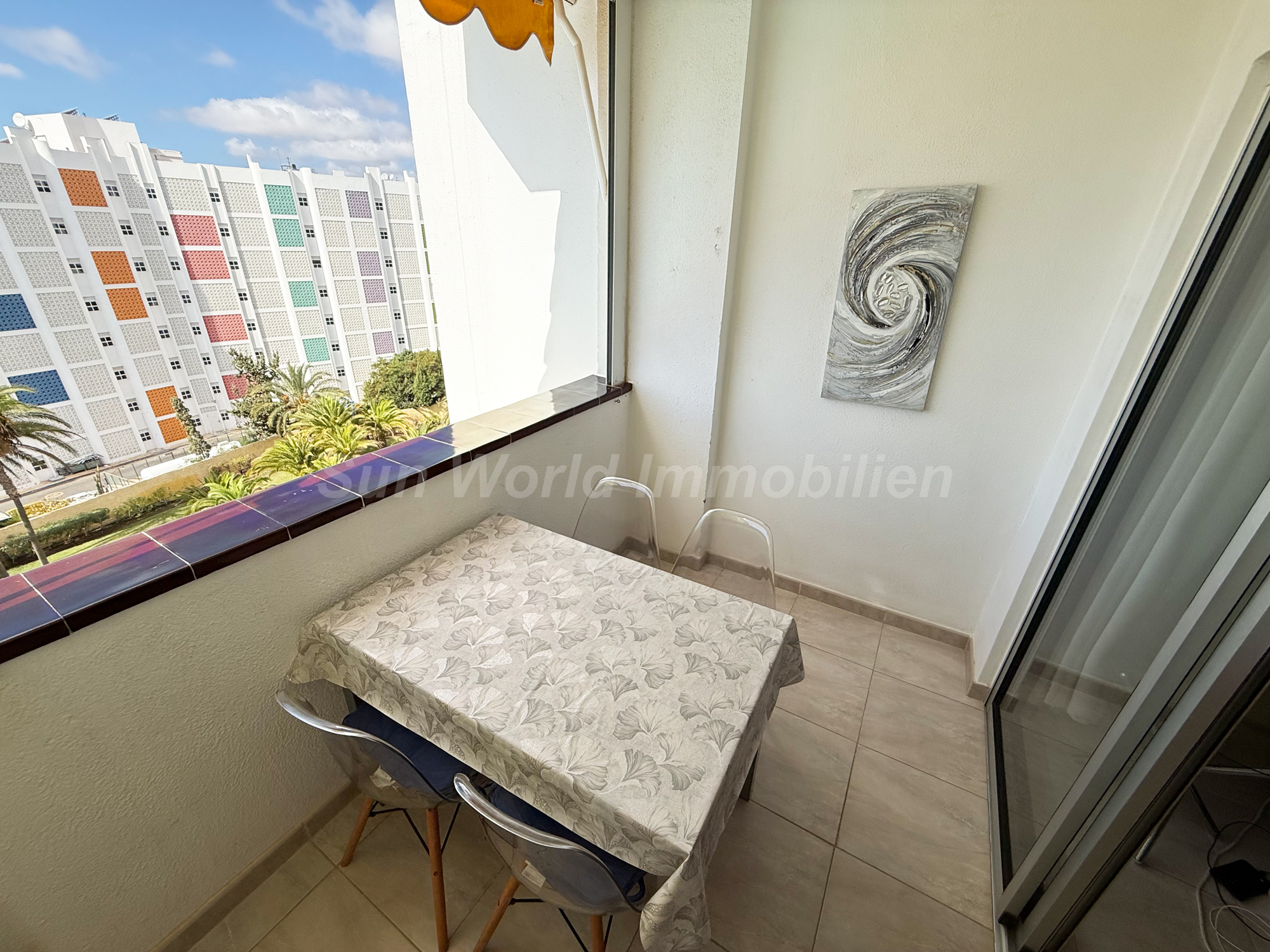 Dieses schöne Apartment liegt in der 6. Etage und bietet von beiden Balkonen herrliche Ausblicke – bis zum Meer. Es verfügt über ein großes Schlafzimmer mit Zugang zum Balkon, ein helles Wohnzimmer mit einer großzügigen Einbauküche (inklusive Geschirrspüler und Waschmaschine) sowie ein Badezimmer mit Fenster. Der Balkon, vom Wohnzimmer aus zugänglich, ist mit einer Markise und transparentem Windschutz ausgestattet – perfekt, um die Sonne zu genießen oder gemütlich draußen zu sitzen.